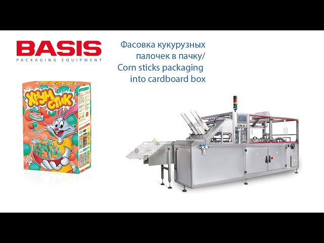 Наприкінці вересня 2021 р. завод буде оснащений вертикальним картонатором Basis 80 від компанії «БАЗІС» для пакування кукурудзяних паличок. Процес упаковки відбувається так: продукт з технологічної лінії надходить у завантажувальний бункер картонатора, далі кукурудзяні палички зважуються і потрапляють безпосередньо в пачку. Потім пачка трясеться для забезпечення максимального заповнення. Далі готова пачка заклеюється та передається в зону упаковки групи. Формується група з 6 пачок, яка упаковується в термозбіжну плівку.